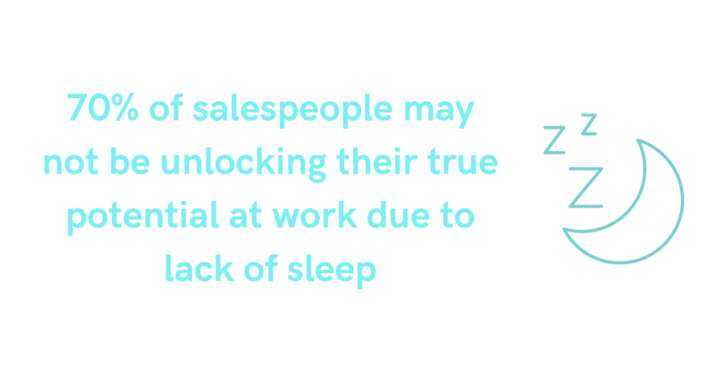 Worryingly, 70% of adults confess to be underslept, which means 70% of salespeople may not be unlocking their true potential at work due to lack of sleep.